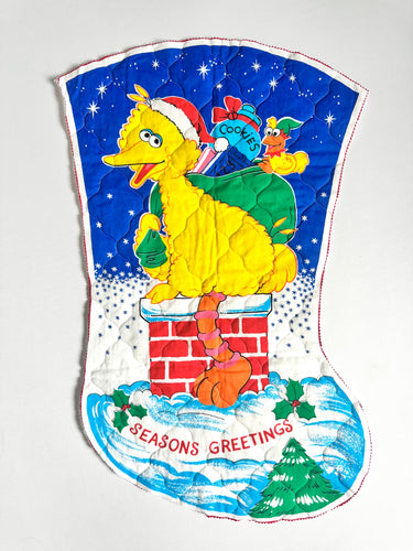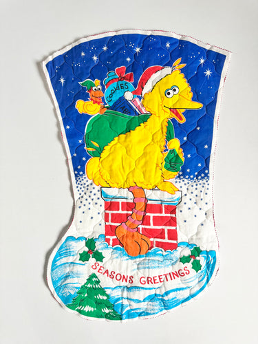 Vintage Sesame Street Santa Big Bird Quilt Wall Decor A