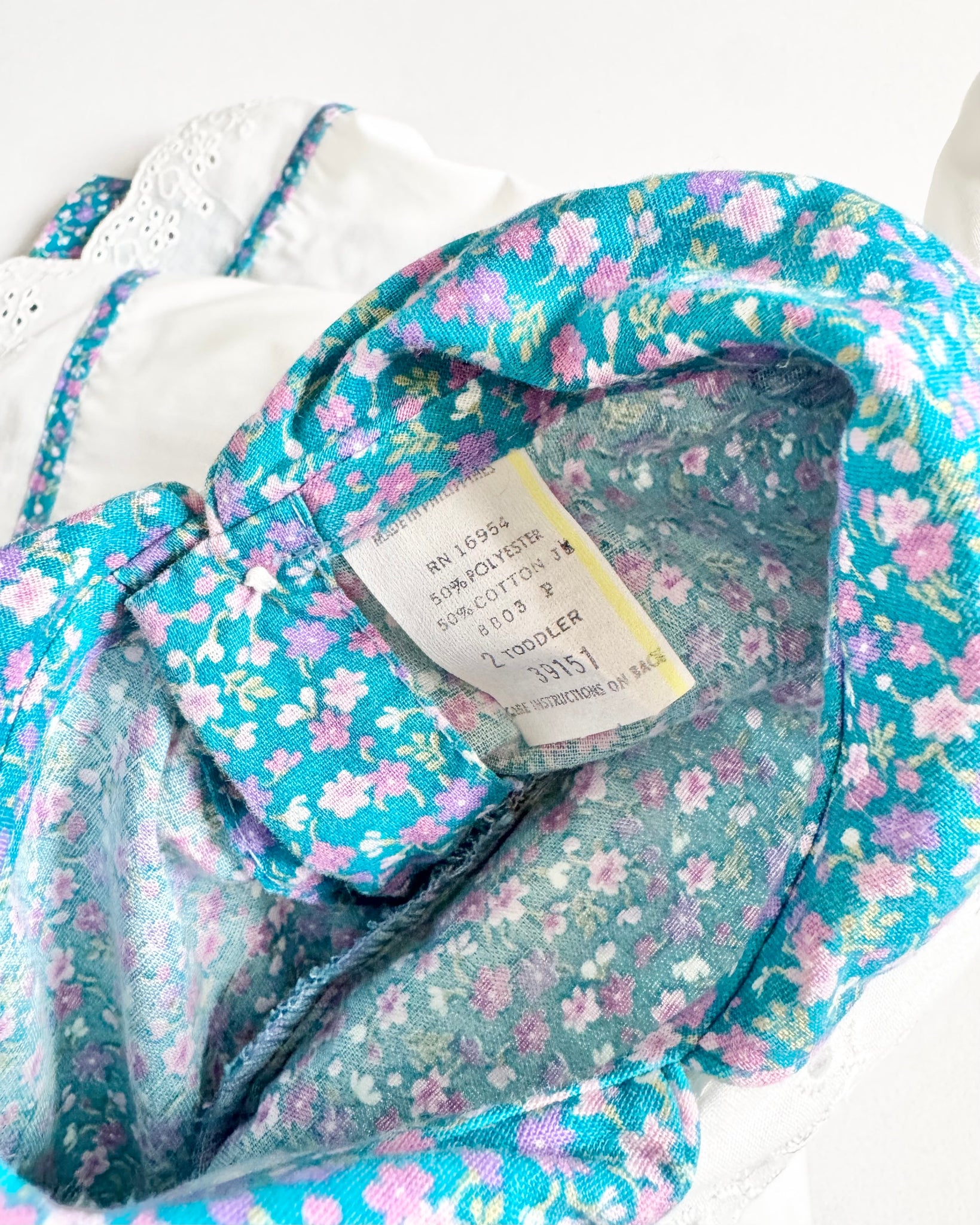 ヴィンテージ 水色花柄 エプロン ワンピース (2点セット)