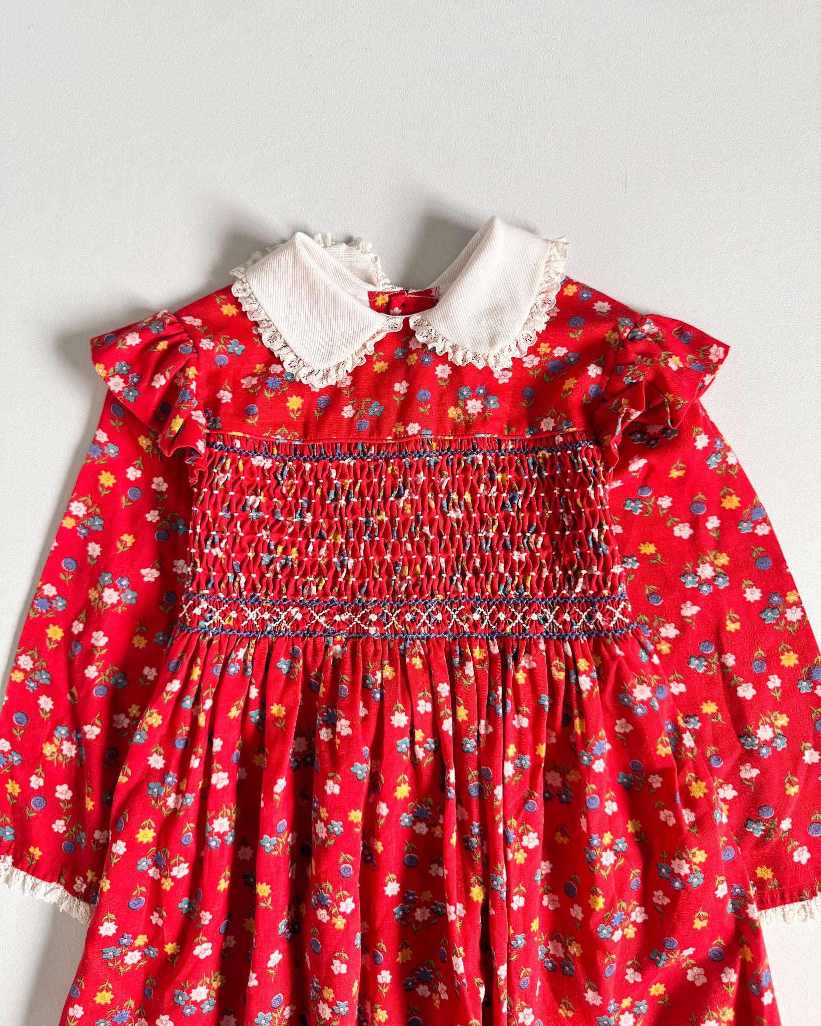 Vintage Polly Flinders Floral Smocked Dress 5T (100-110cm)