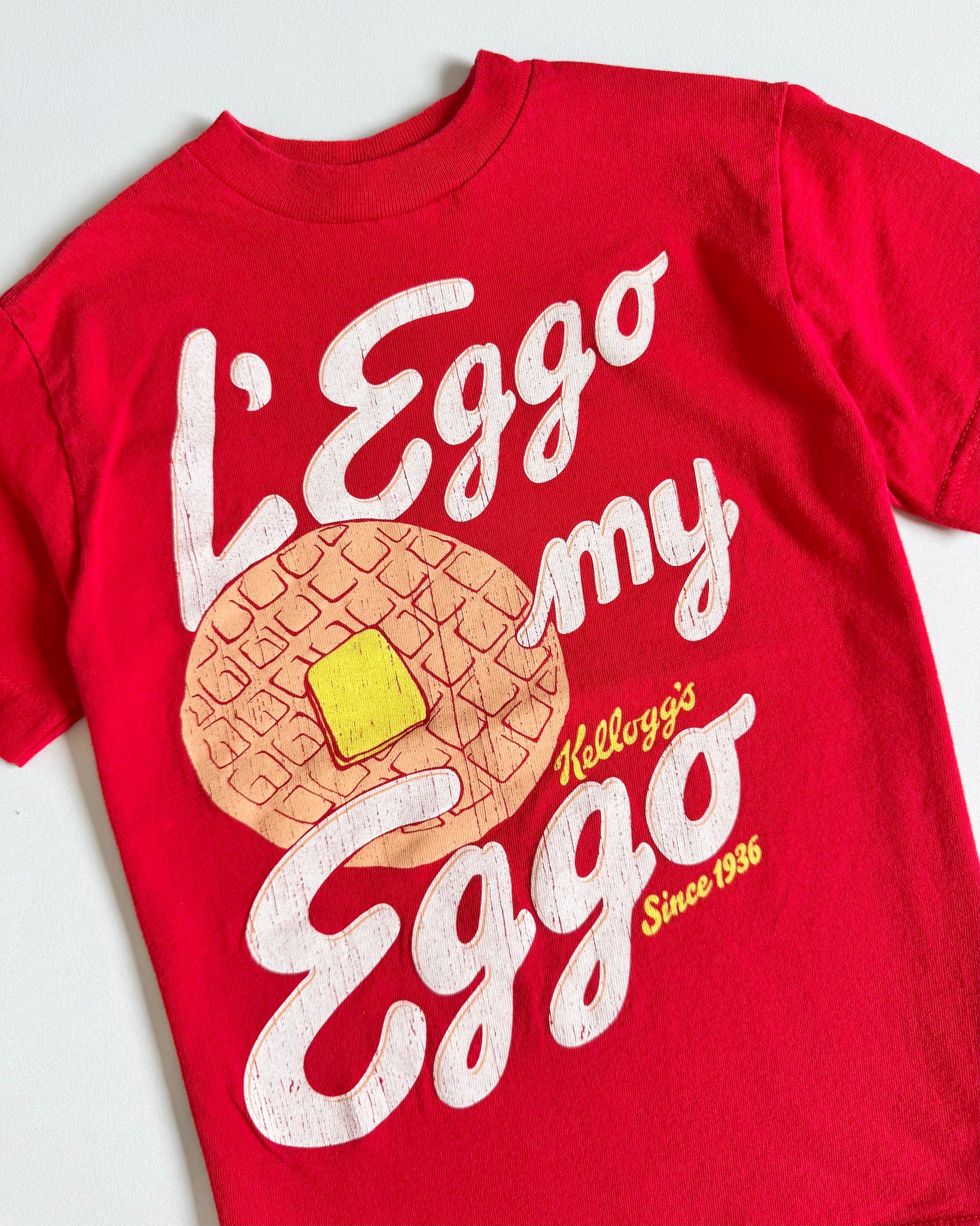 Brand: Kellogg’sColor/Design: RedMaterial: 100% CottonSleeve: ShortSize: Kids XS13in Shoulder width14 3/4in Body width20 3/4in LengthWeight: 4ozCondition: Very GoodPlease check all photos for condition....USED ケロッグ エゴ ワッフル グラフィック Tシャツサイズ: おおよそ 110-120cm※ご購入前に必ず実寸サイズをご確認ください。肩幅 33cm身幅 37.5cm丈 52.5cm
