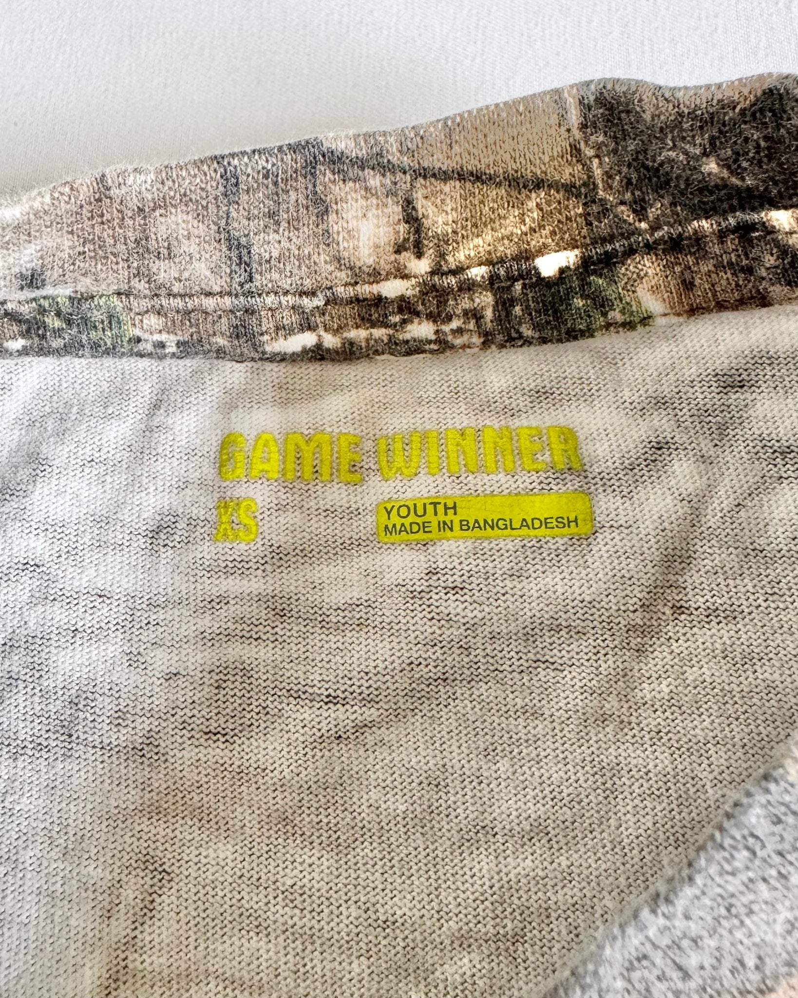 Brand: Game WinnerColor/Design: KhakiMaterial: 100% CottonSleeve: ShortSize: Youth XS/5T11 3/4in Shoulder width13 3/4on Body width17in LengthWeight: 4ozCondition: GoodPlease check all photos for condition....USED リアルツリー Tシャツサイズ: おおよそ 110cm※ご購入前に必ず下記の実寸をご確認いただきますよう宜しくお願いします。肩幅 30cm身幅 34.5cm丈 43cm