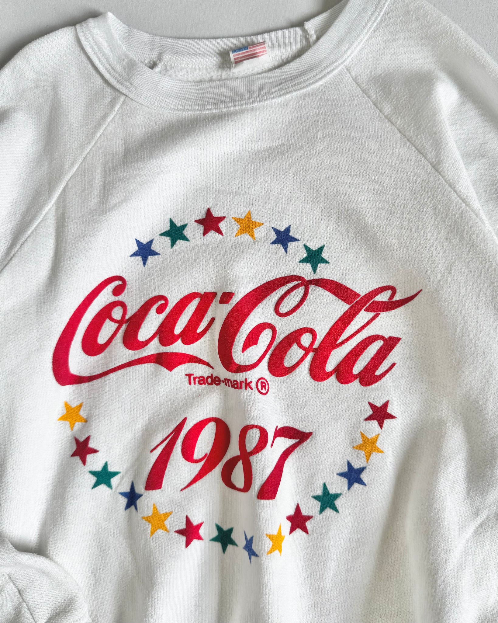 Made in USA Color/Design: White Material: 60% Polyester, 40% Cotton Sleeve: Long Size: Tagged S, Best fits Youth L 17 3/4in Body width 22in Length Weight: 7oz Condition: Very Good Please check all photos for condition. . . . ヴィンテージ コカコーラ スウェット サイズ: おおよそ 150cm ※ご購入前に必ず実寸サイズをご確認ください。 身幅 45cm 丈 56cm