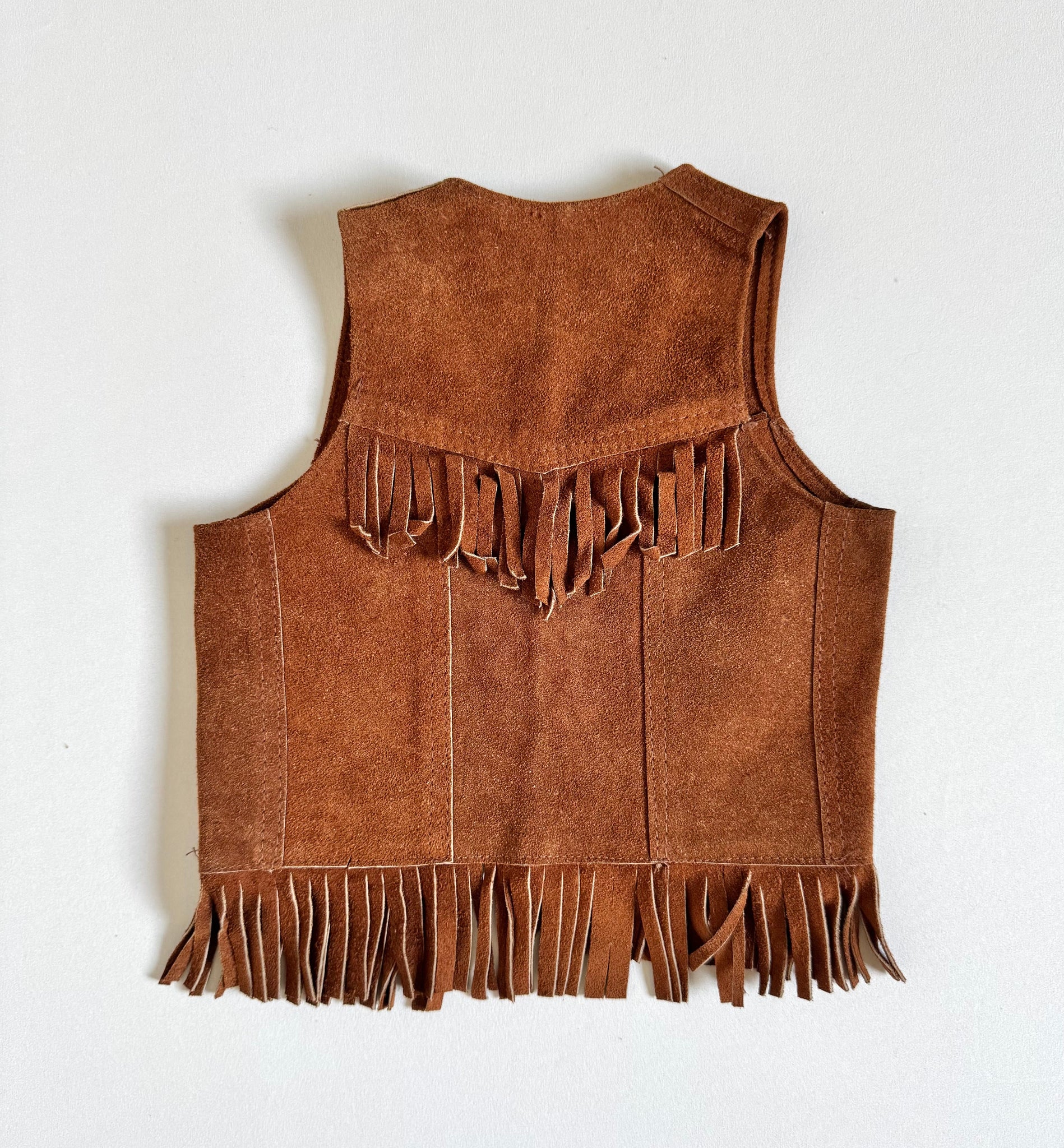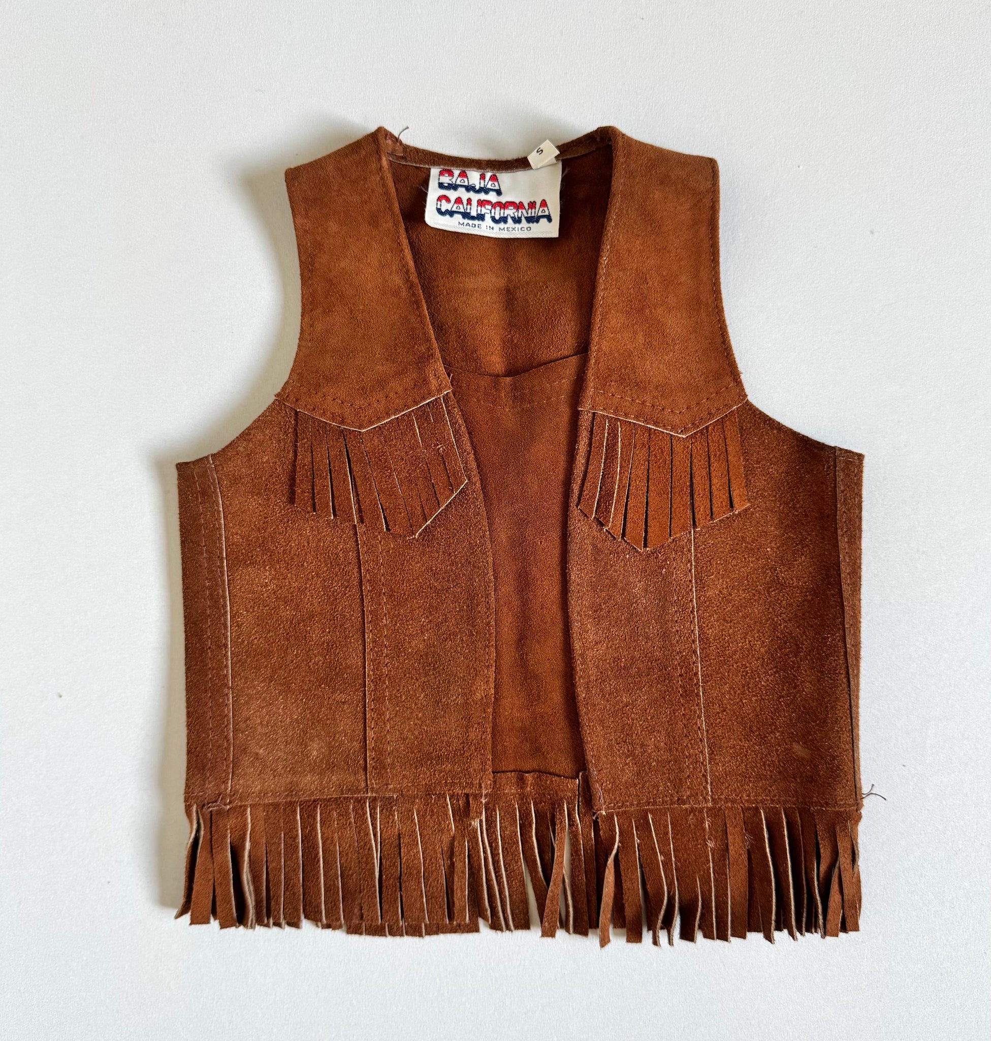 Brand: Baja California Color/Design: Brown Material: Leather Size: Kids S/ Best fit 4/5T 11.5in Body width 14in Length Weight: 8oz Condition: Very Good Please check all photos for condition. . . . ヴィンテージ Baja California レザーベスト サイズ: おおよそ 100-110cm ※ご購入前に必ず下記の実寸をご確認いただきますよう宜しくお願いします。 身幅 29cm 丈 35.5cm (フリンジ部分を含む)