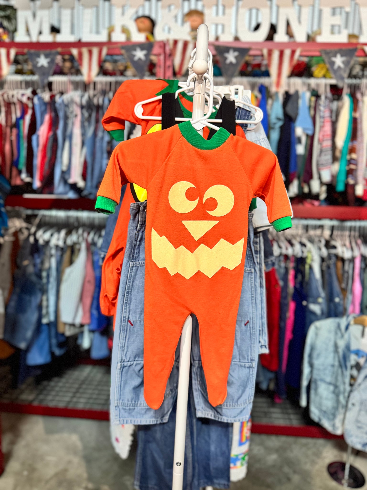 Color/Design: OrangeSleeve: LongSize: Approx 0-3M8.5in Body width19in Length13.5in Shoulder to CrotchWeight: 4ozCondition: Very GoodPlease check all photos for condition....ヴィンテージ ハロウィン パンプキン カバーオールサイズ: おおよそ 55-60cm※ご購入前に必ず下記の実寸をご確認いただきますよう宜しくお願いします。身幅 21.5cm丈 48cm肩から股にかけて 34cm