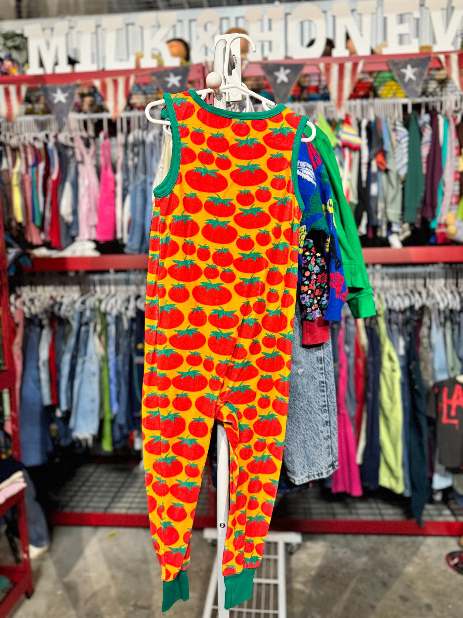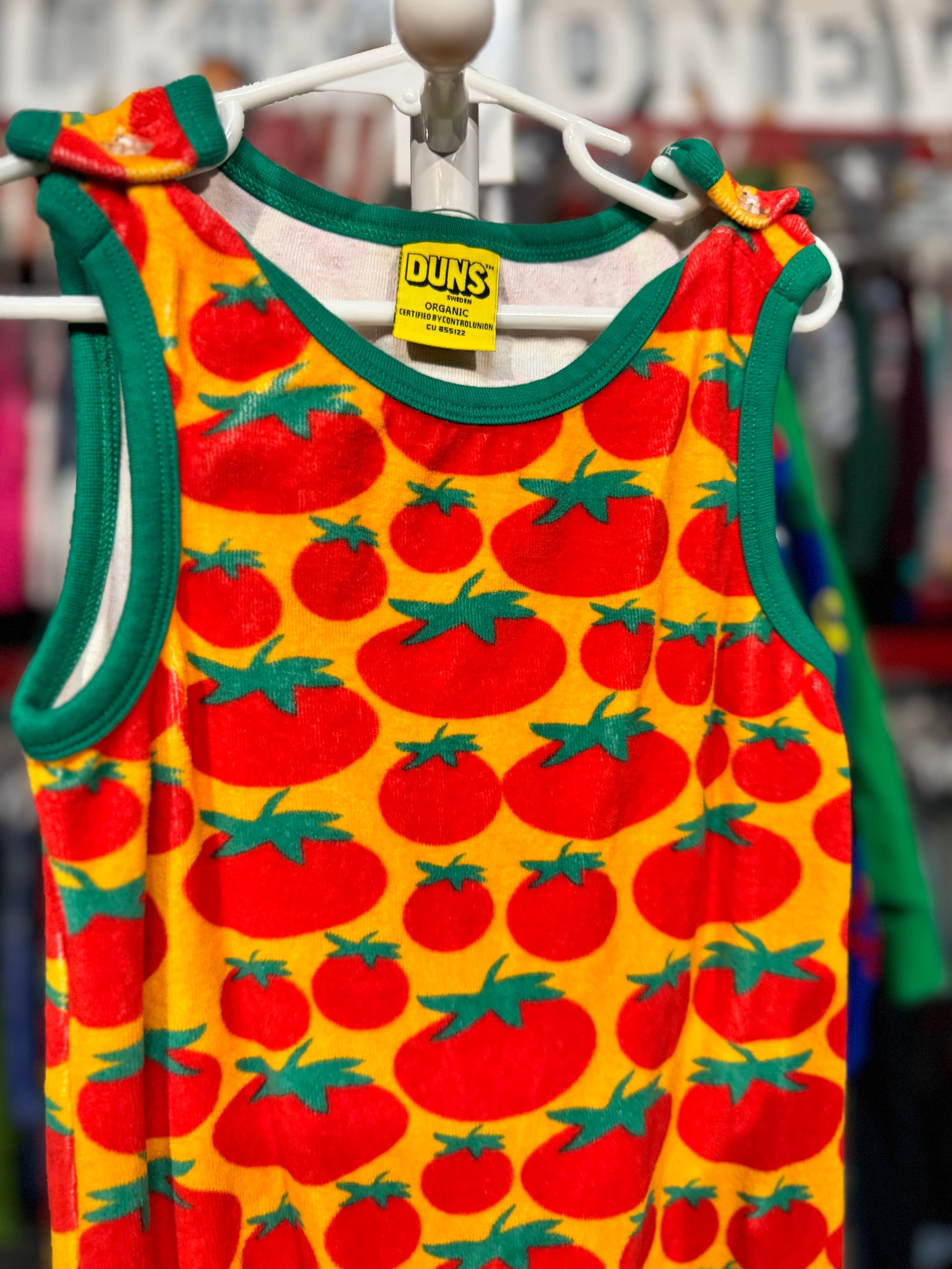 Brand: Duns (Sweden)Color/Design: Tomato’s Prints Material: 100% Organic CottonSize: 5T12in Body width36in Length22.5in Shoulder widthWeight: 8ozCondition: Very GoodPlease check all photos for condition....USED Duns トマト総柄 タンクつなぎサイズ: おおよそ 110cm※ご購入前に必ず実寸サイズをご確認ください。肩幅 30.5cm身幅 91.5cm丈 57cm