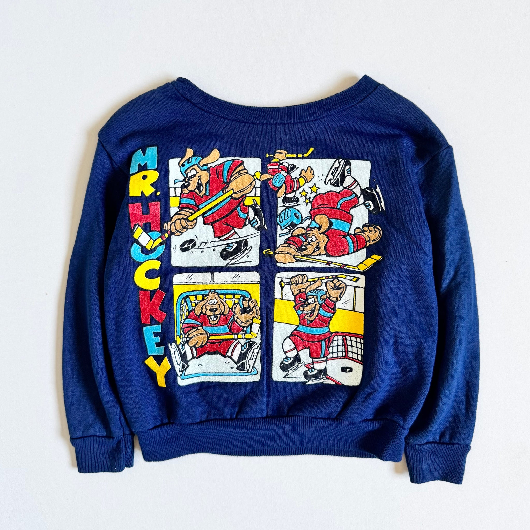 Brand: Basic EditionsColor/Design: Navy BlueSleeve: LongSize: 3T13in Shoulder width13in Body width14 1/4in LengthWeight: 4ozCondition: Very GoodPlease check all photos for condition....ヴィンテージ ミスター・ホッケー トレーナーサイズ: おおよそ 95cm※ご購入前に必ず実寸サイズをご確認ください。肩幅 33cm身幅 33cm丈 36cm