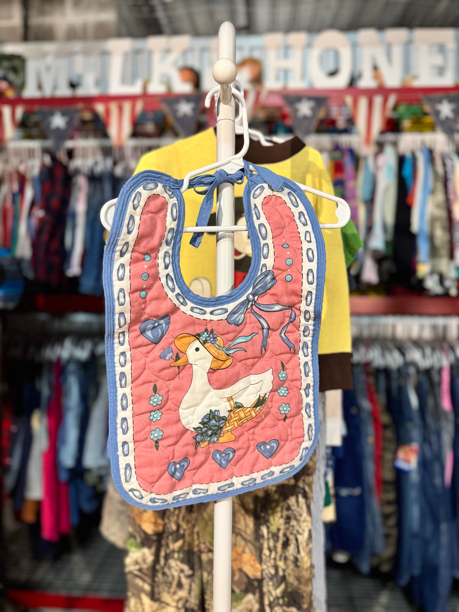 Color/Design: Pink/Blue Size: 10×14 1/4in Weight: 2ozCondition: Very GoodPlease check all photos for condition....ヴィンテージ アヒルさん キルト/パイル地 スタイサイズ: フリーサイズ/ 25×36cm