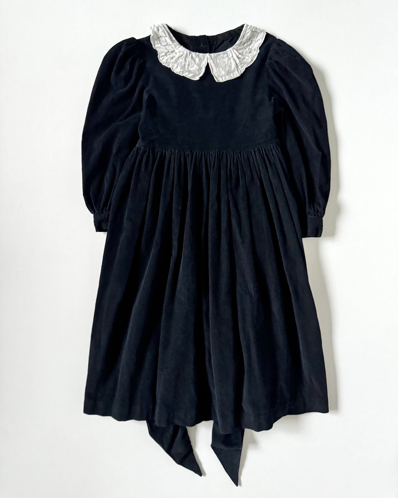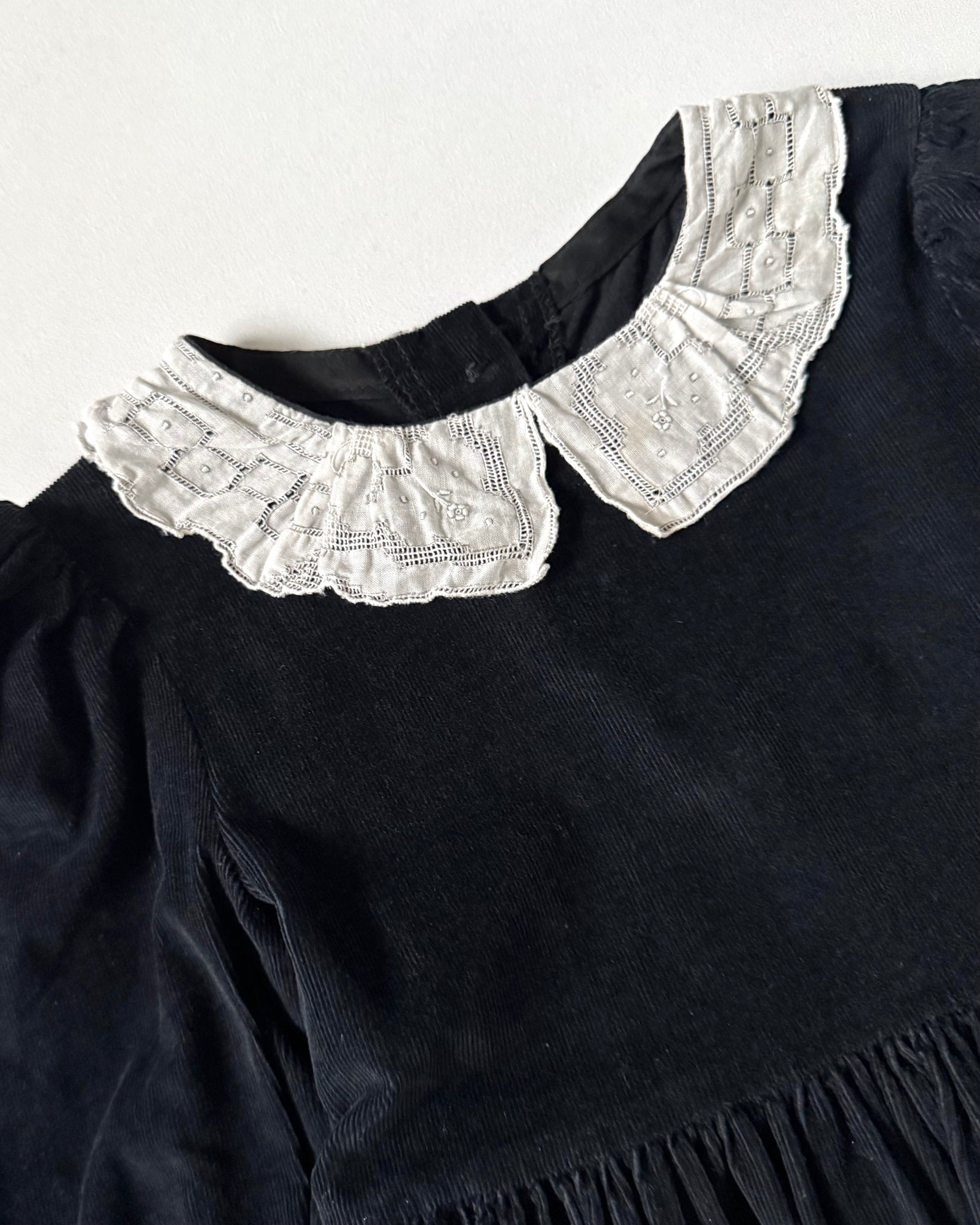 ヴィンテージ ホワイトレース襟 ブラック コーデュロイワンピース