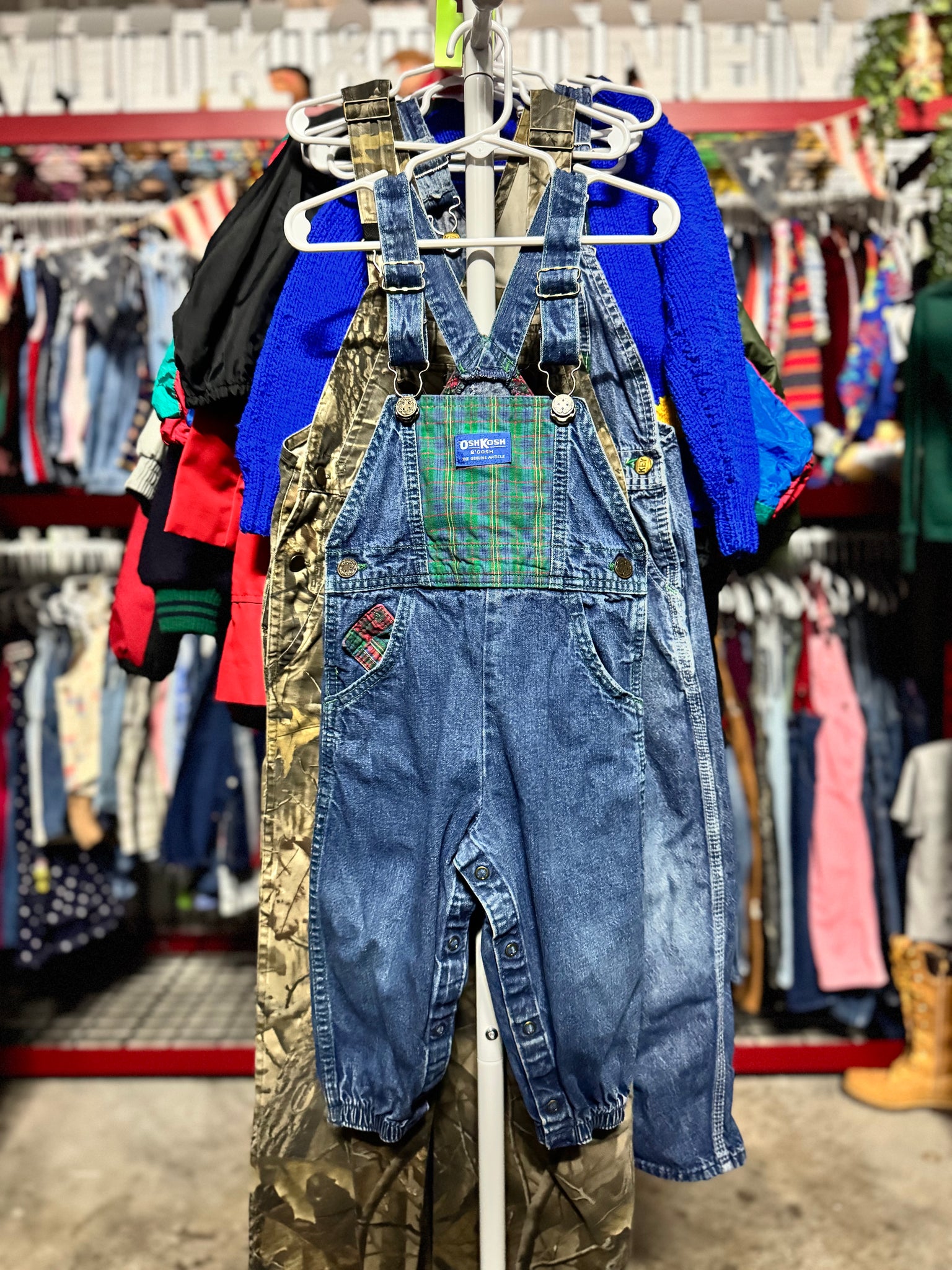 ヴィンテージ オシュコシュ デニム/チェック柄 オーバーオール